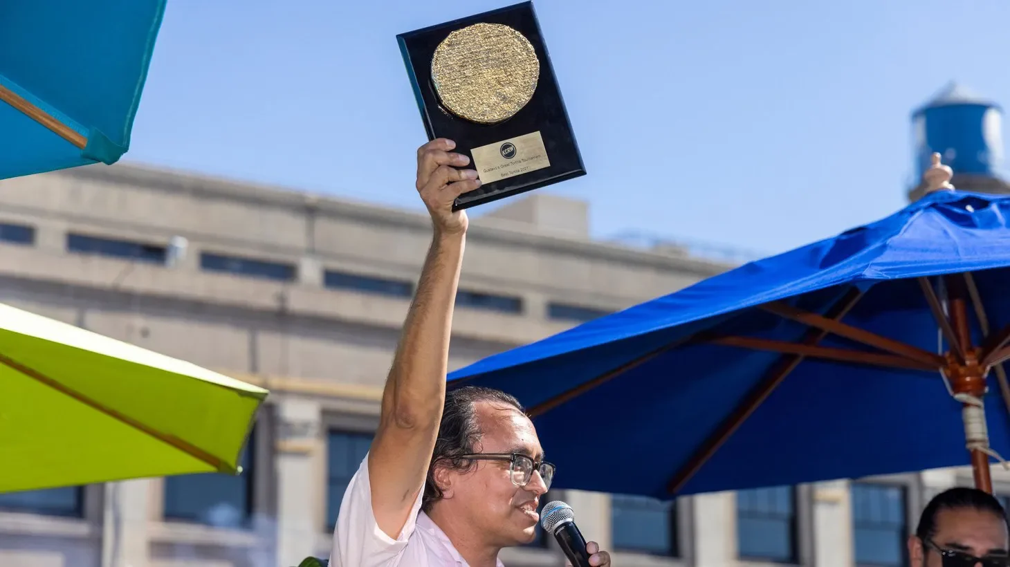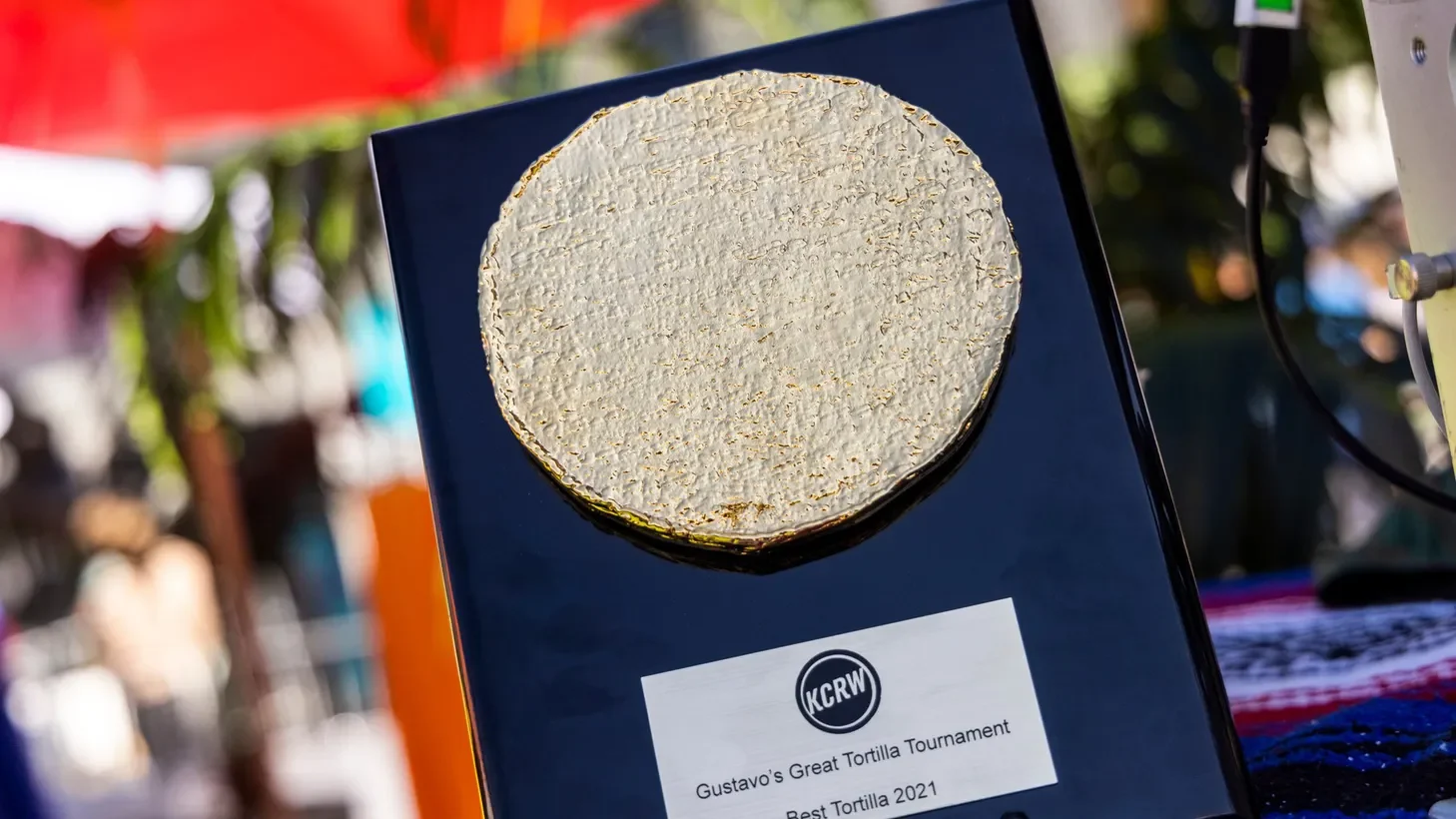 Exactly what it sounds like: a gold tortilla on a plaque. This trophy will be presented to the winner to take home on October 16th!